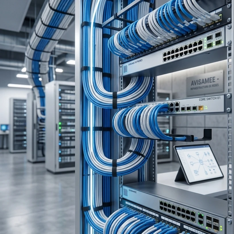 "La infraestructura de red es el motor de su empresa. Diseñamos y ejecutamos cableado estructurado de alta velocidad que elimina cuellos de botella y maximiza la productividad de su equipo. Asegure una comunicación fluida, transferencia de datos eficiente y una conexión a internet robusta que soporte las demandas tecnológicas de hoy y de mañana.